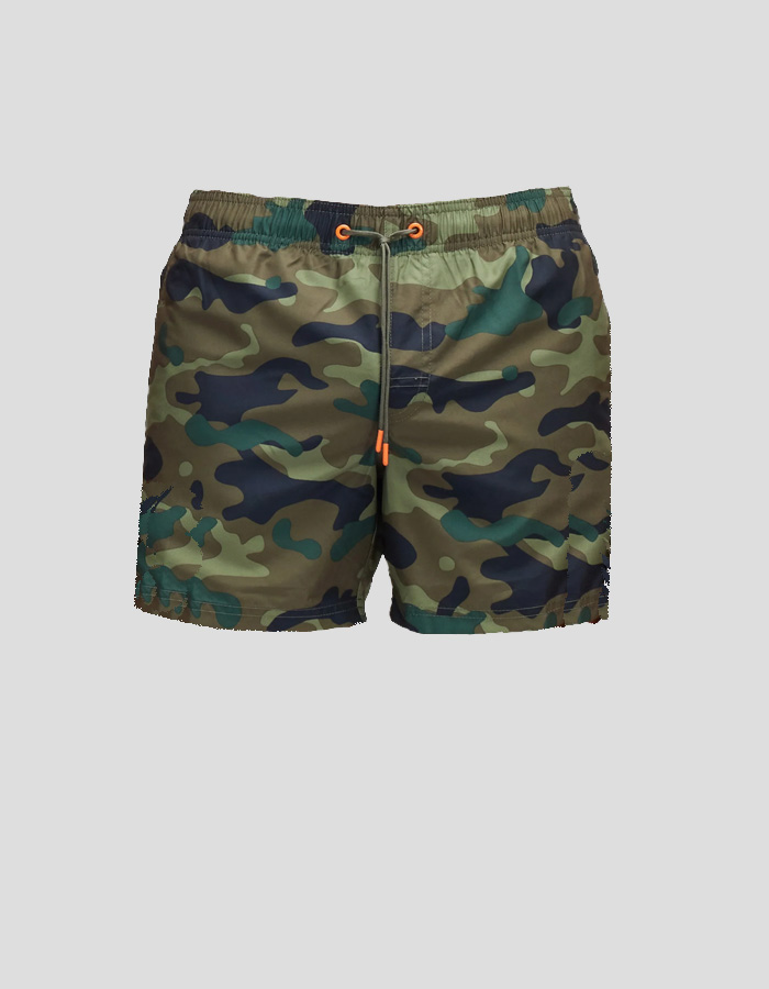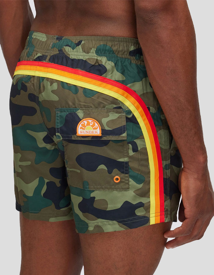 Bañador con estampado camuflage de la marca Sundek. Cintura elástica con cordón ajustable. Slip interno con red. Bolsillos laterales. Bolsillo superior con una solapa con cierre de velcro y encaje de llavero en el interior.
