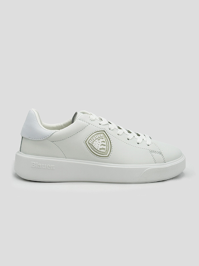 Sneaker en color blanco de la marca Blauer. Logo de la marca engomado en el lateral en color blanco. Cordones y suela en color blanco. Talonera sin contraste.