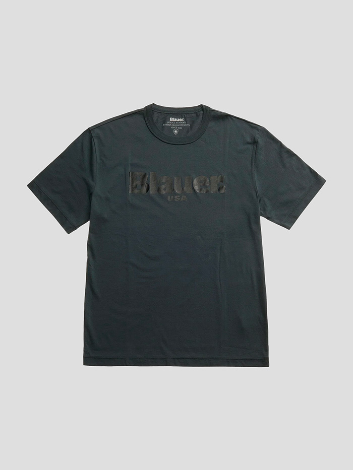 Camiseta de algodón en color gris, modelo Bourne. cuello redondo, manga corta. Logo estampado en el pecho.