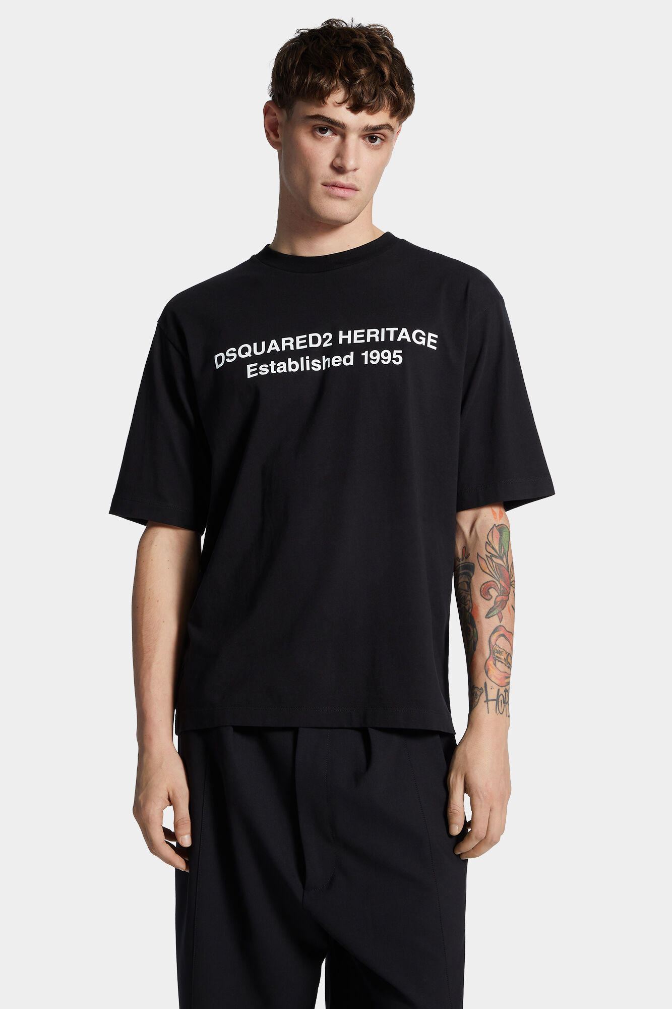 Camiseta en color negro con logo Heritage estampado en blanco de la marca Dsquared2. Corte regular. Cuello redondo. Manga corta.