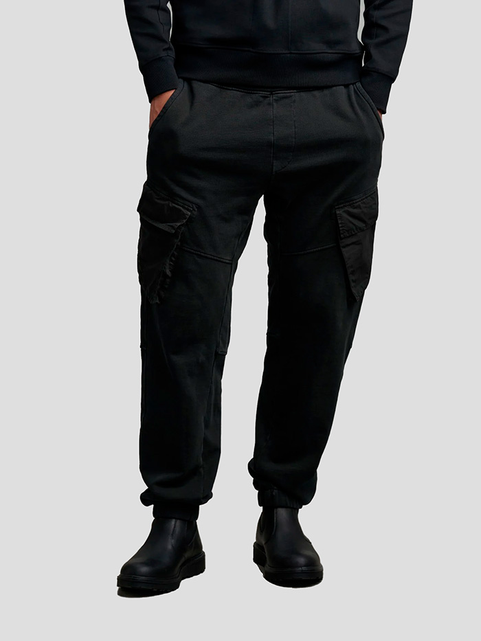 Pantallón de algodón en color negro tipo cargo de la marca Blauer. Cintura elástica. Dos bolsillos exteriores.