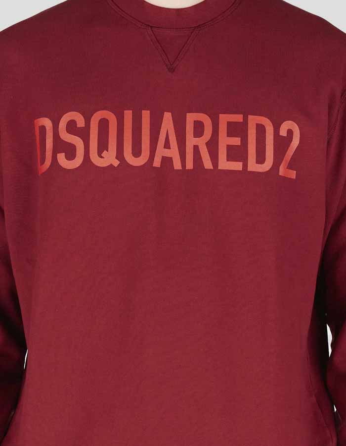 Sudadera de algodón en color granate DSQUARED2 con letras estampada en color rojo.