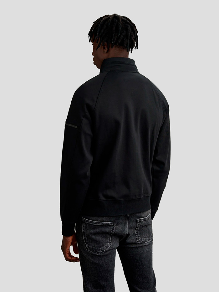 Sudadera con cremallera en color negro de la marca Blauer. Capucha escondida en el cuello. Bolsillo en la manza izquierda con cierre con cremallera. Logo engomado en el pecho.