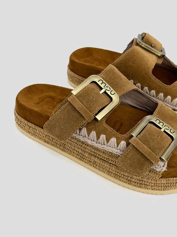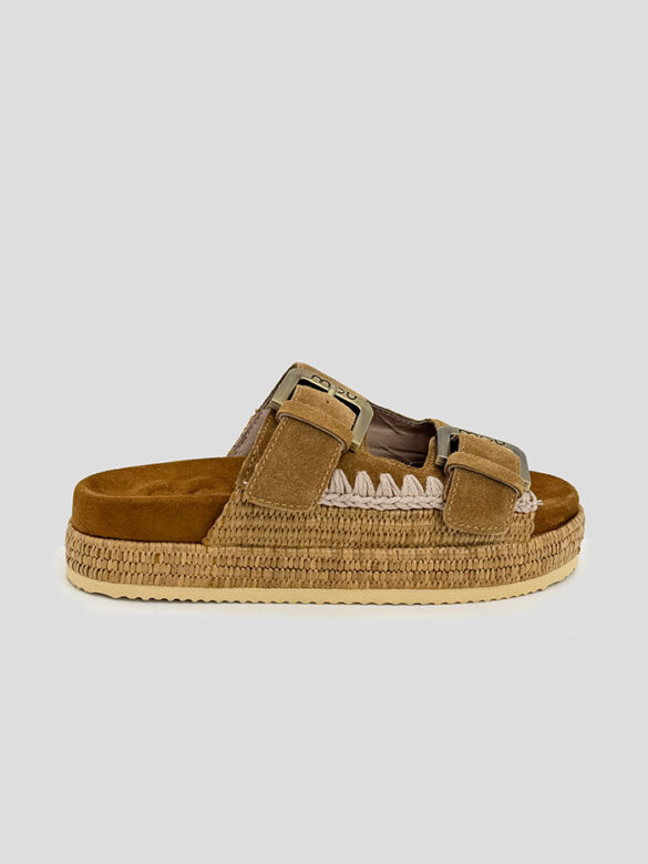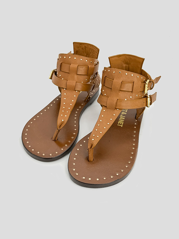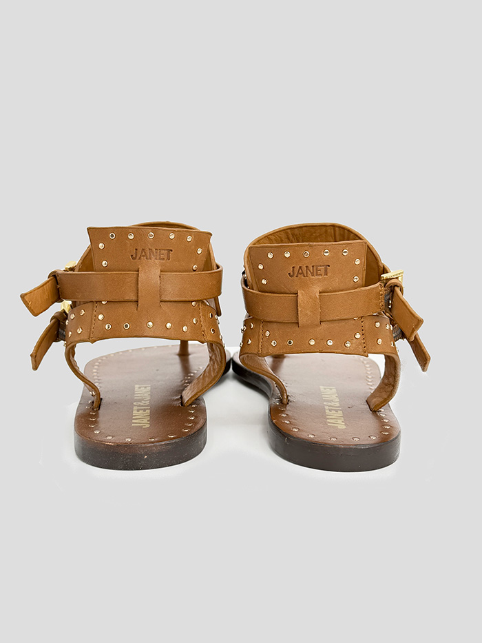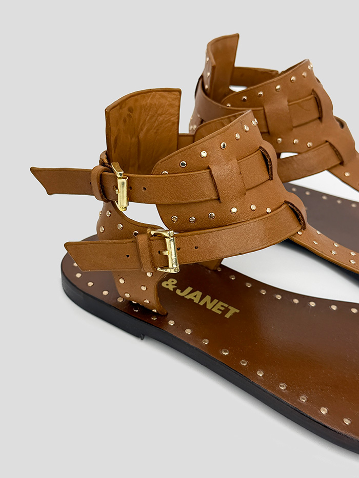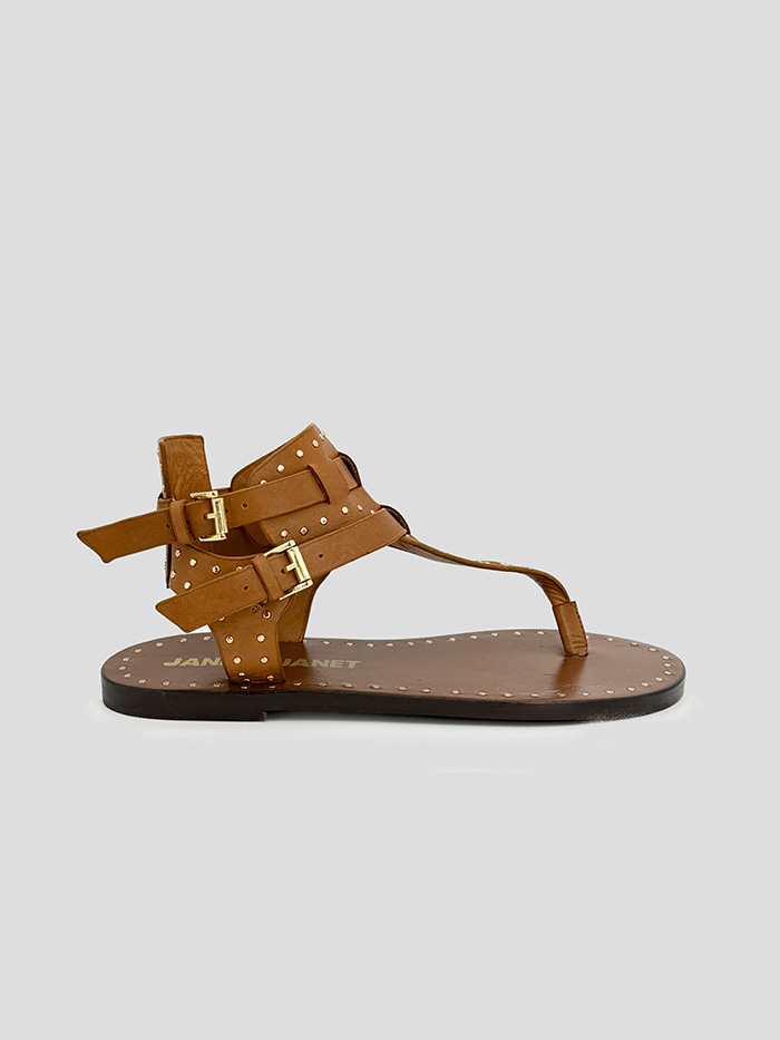 Sandalia de cuero en color marrón, modelo Lily de la marca Janet & Janet. Cierre con doble hebilla.
