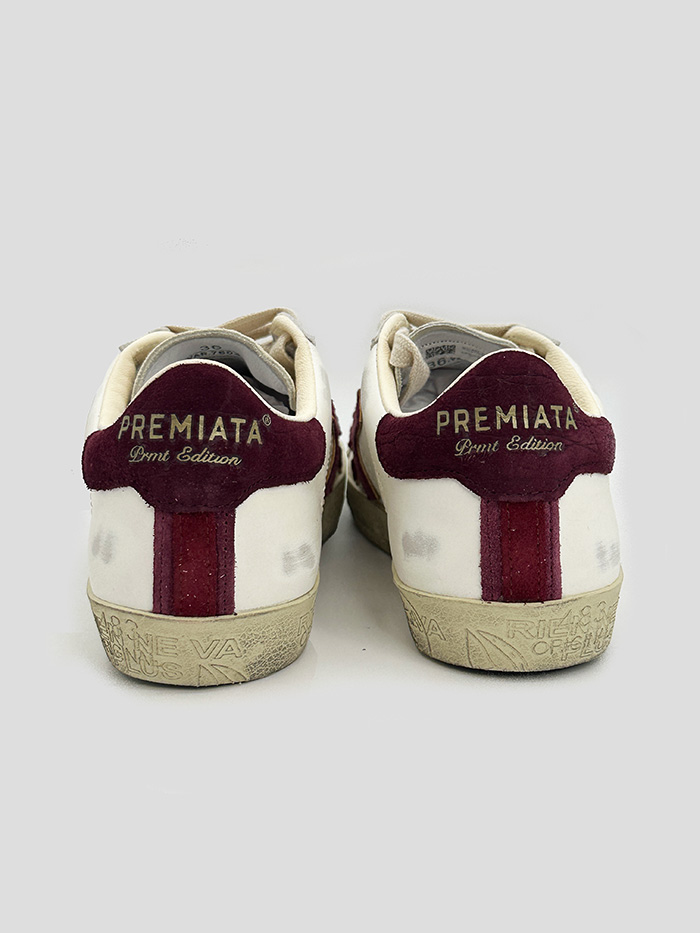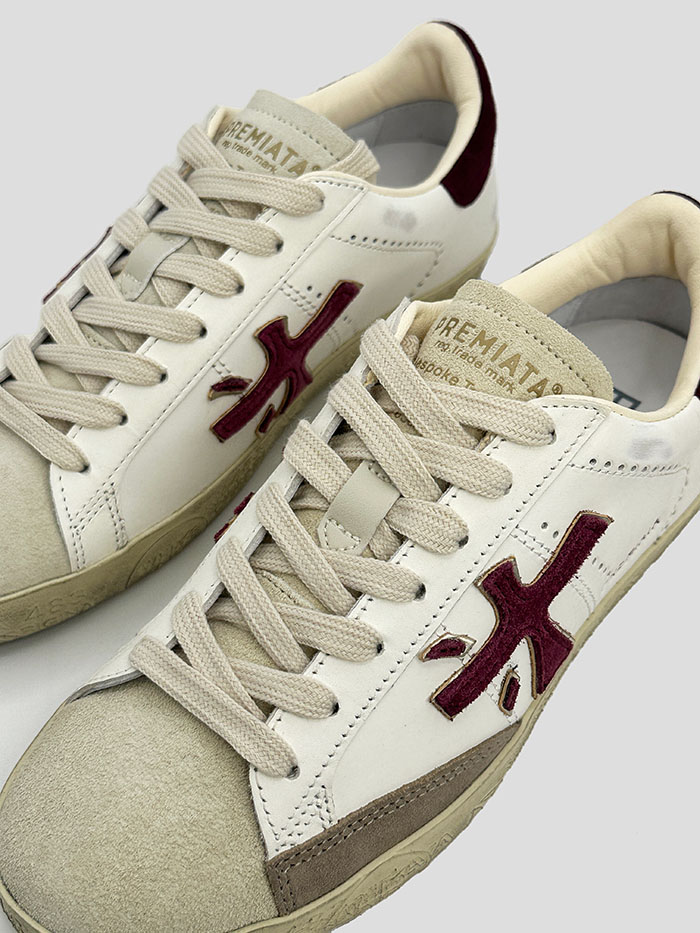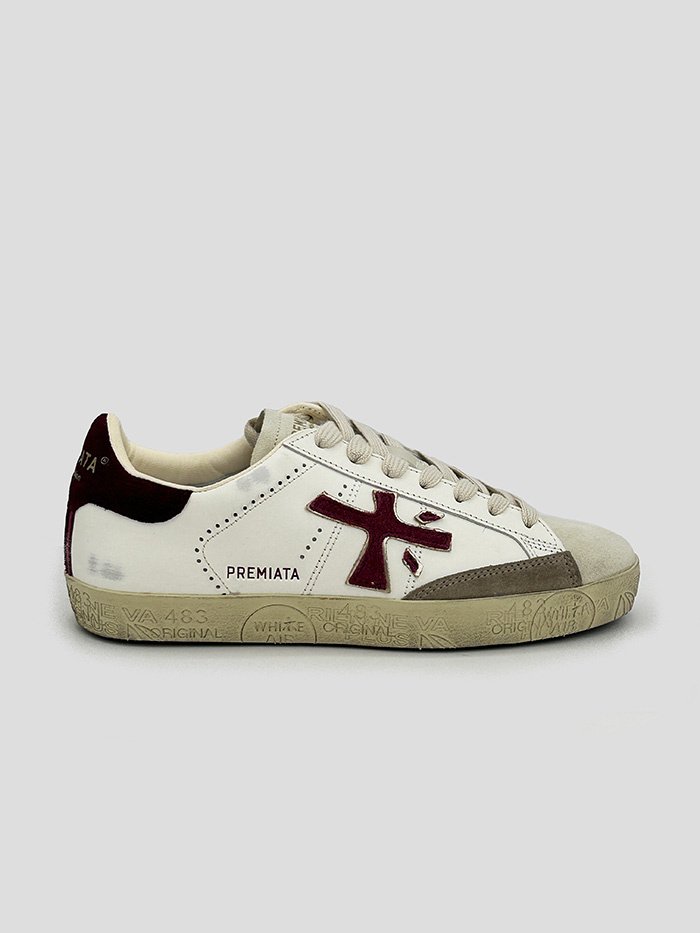 Sneaker para mujer, modelo Stevend de la marca Premiata. Logo de la marca en el lateral atercipelado en color granate, al mismo tono de la talonera. Puntero y lengüeta con peil tipo ante.