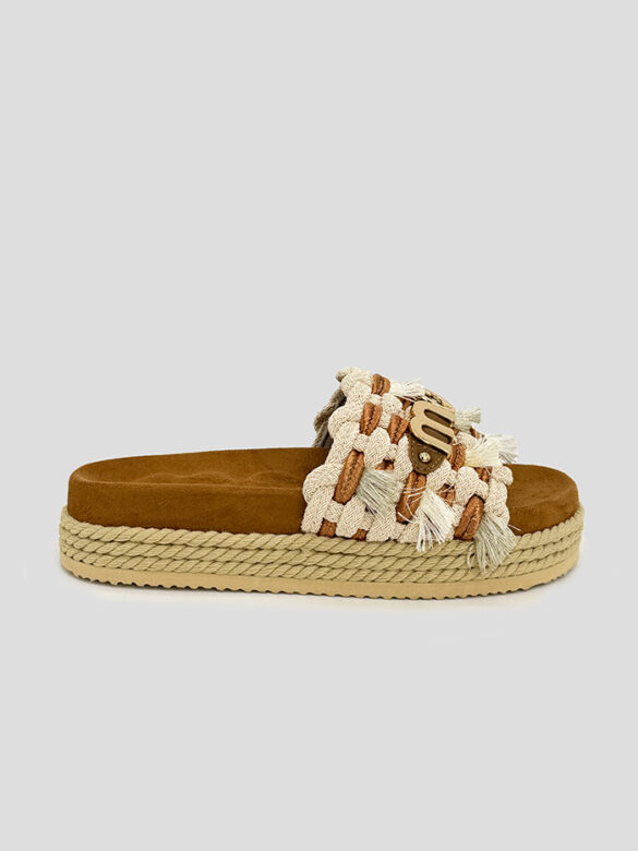 Sneaker para mujer con suela rosa fluor de la marca Hidnander. Material exterior compuesto de nailon con estampado camuflage en tonos rosa y azul, y piel girada en la punta y en la talonera. Cordones en color blanco.