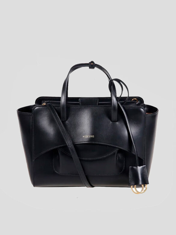 Bolso de piel en color negro, con cierre automático decorado con hebilla característica de la marca Versce Jeans Couture. Detalle de mini estrellas en color dorado en el frontal. Dispone de dos correas, una de eslabones de laton en color dorado más cprta y otra en piel de color negro para poder llevarlo cruzado.