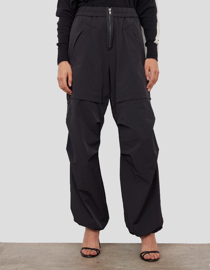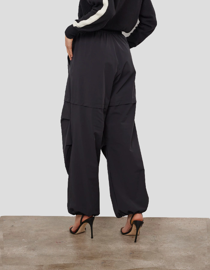 Pantalón de la colección Bad Habits en color negro, modelo Camila. Tejiod técnico con goma ajustable en el tobillo. Cintura elástica y cremallera central. Dos bolsilos delanteros. Tejido: 86% Poliamida, 14% Elastano.