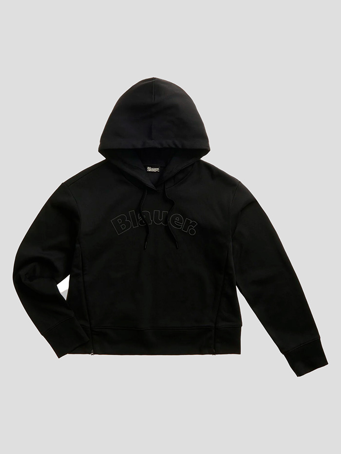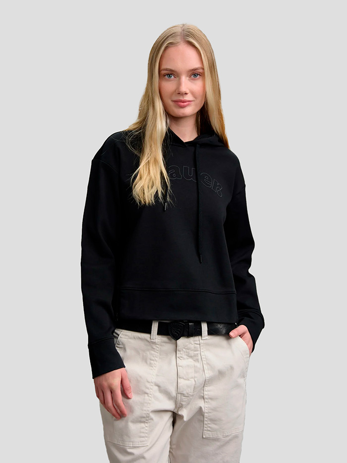 Sudadera con capucha en color negro. Logo engomado en color negro en el pecho. Manga larga.